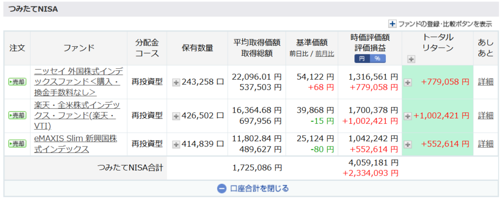 つみたてNISA(旧NISA)で運用中の3銘柄は特に変更することなく今後も放置です。